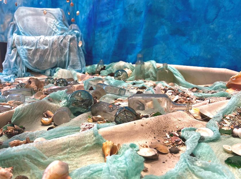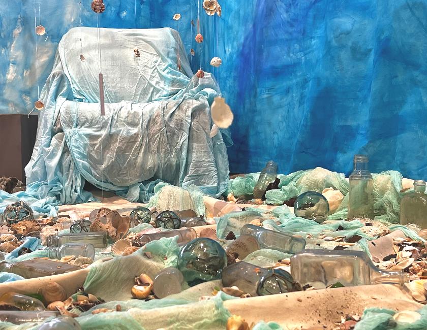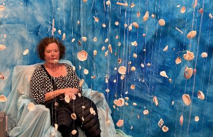 Fellow artist and creator of the floating figure in the background looking at the Floating Bed of Lost Dreams. Also included in the background are floral veils by De Lane Bredvik.